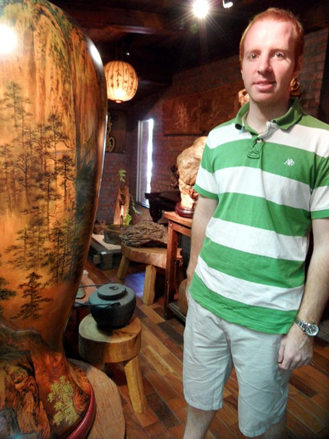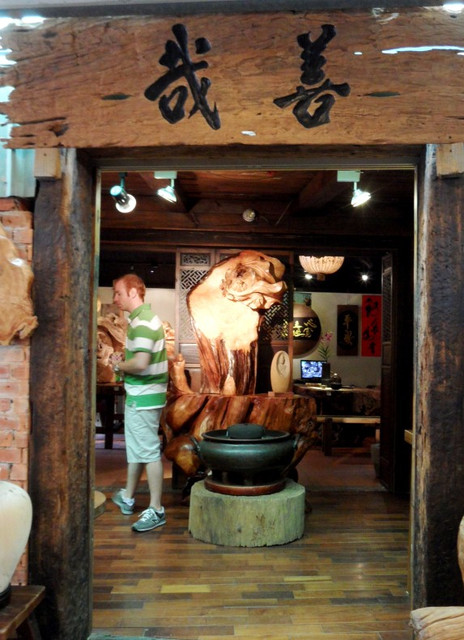 他說這裡的木雕都好漂亮,很特別 但是有的商店賣太多一樣的東西 不然就是太貴,