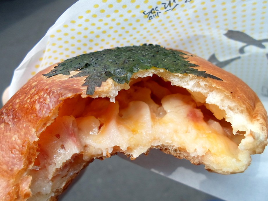 咬一口 看看裡面有甚麼? 起司跟燻雞