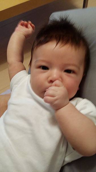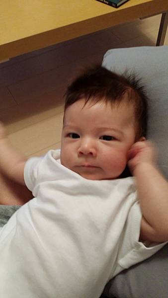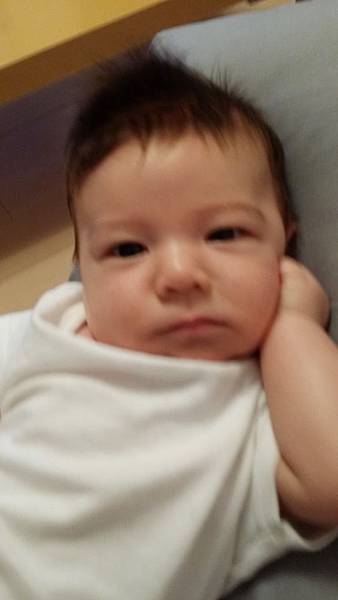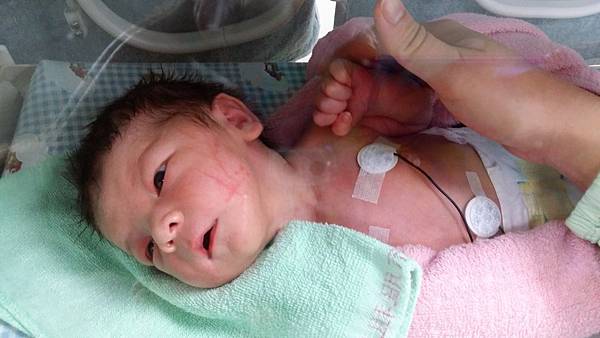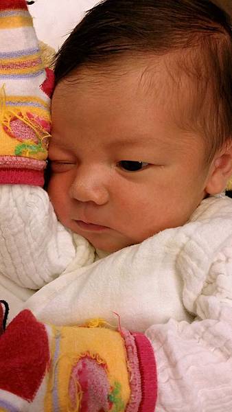 這張是小瑛鈦剛出生沒多久的照片 才出生沒幾天就可以把自己臉抓成這樣